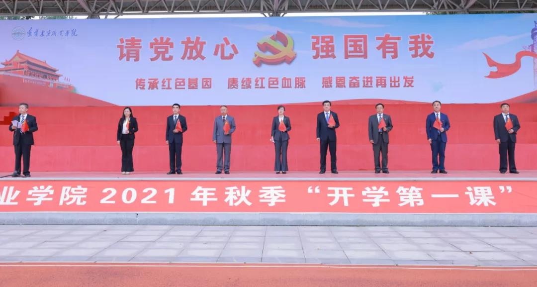 9月6日,辽宁建筑职业学院以“传承红色基因,赓续红色血脉,感恩奋进再出发”为主题,隆重举行“开学第一课”主题升旗仪式,线上和线下万余名师生参与,在“请党放心、强国有我”的铿锵誓言中共同开启新学期。党委书记韩丽华,党委副书记、校长商学来,党委委员、副校长田百洲,党委委员、副校长白俊,党委委员、纪委书记王诚勇出席本次活动。