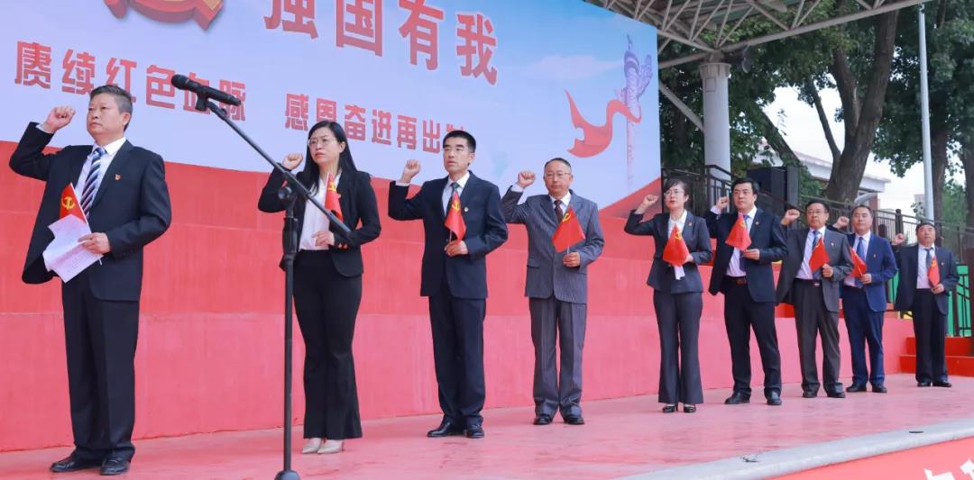 之后,全体师生举起右拳,面向国旗庄严宣誓,掷地有声的誓词表达出师生永远忠诚于党,忠诚于祖国,忠诚于人民的承诺。