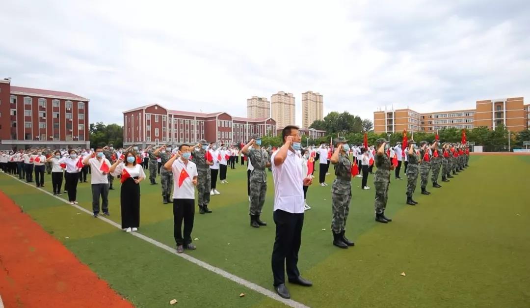 学校中层干部、教职工及学生代表近三百人参加了线下的升旗仪式,未返校学生由各班组织,通过线上参与了本次活动。