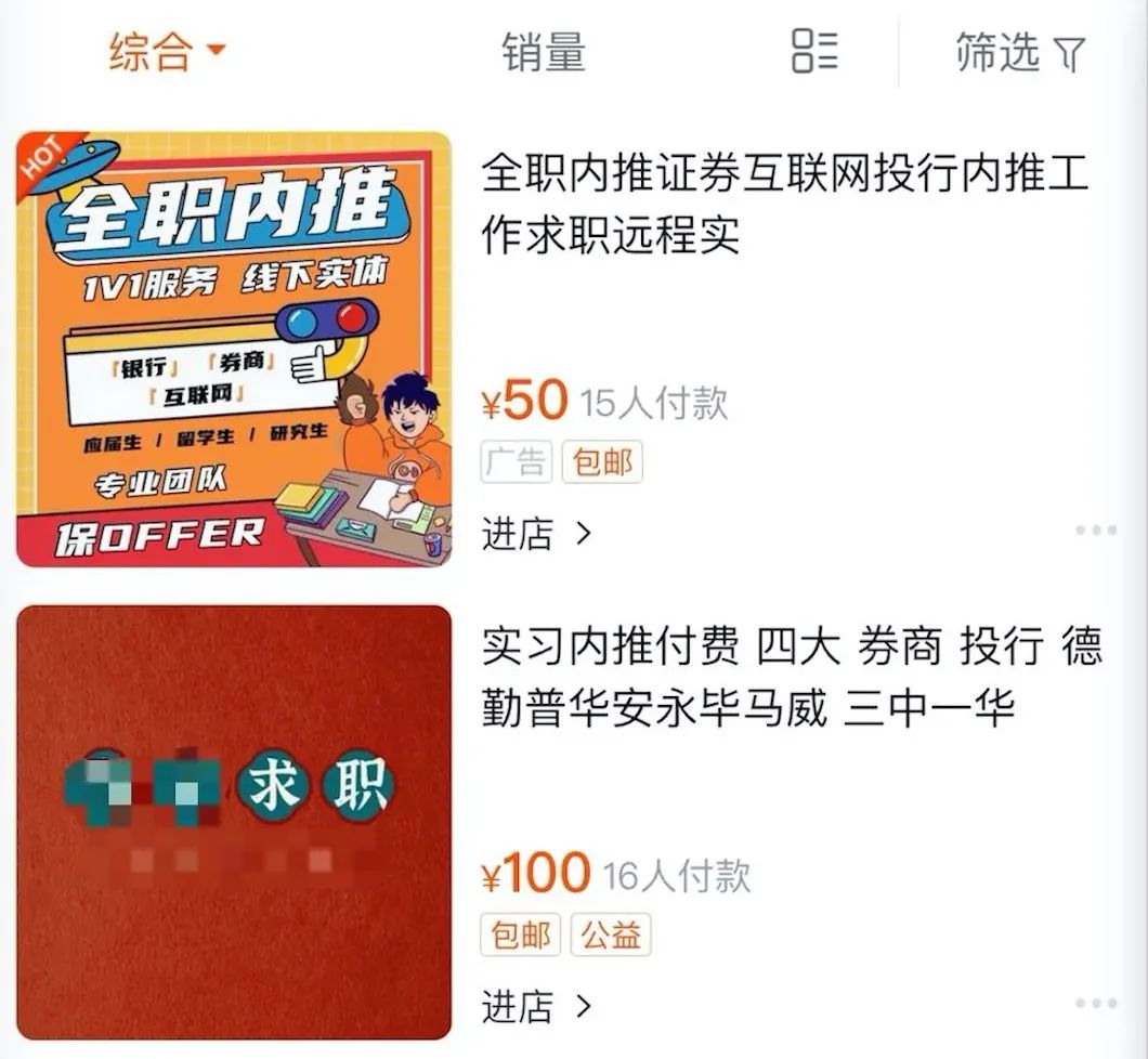 记者在网上搜索,有不少提供此类服务的商家。一名商家声称“金融、公关、互联网等行业”的诸多知名企业都可以付费内推,实地实习价格在1.5万元左右,如果是远程实习价格5千元。