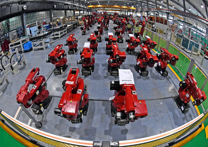 2017年6月6日拍摄的沈阳新松机器人自动化股份有限公司工业机器人生产车间。新华社记者杨青 摄