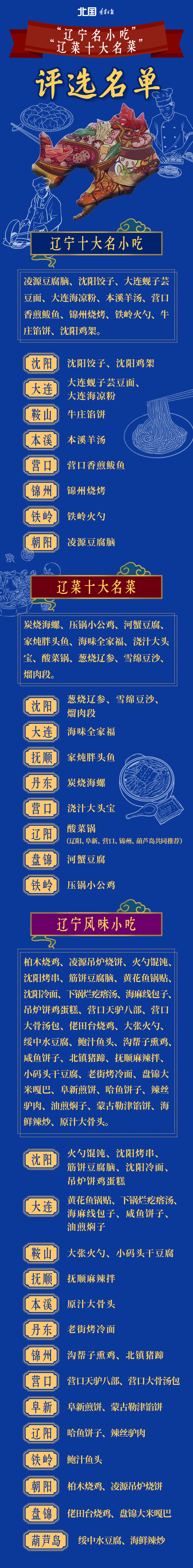 辽宁省商务厅相关负责人表示,此次评选活动,评选出的每个辽宁名小吃、每道辽菜名菜都使用传统工艺制作,有着悠久的历史传承和文化内涵。下一步,将以此次评选活动为契机,加大对辽宁名小吃、辽菜名菜的宣传推广力度,讲好辽宁美食故事;举办突出地域特色的美食节、小吃节,培育美食名街、名店、名厨,打造辽菜宣传推广平台,扩大辽宁美食的知名度和影响力;鼓励入选辽宁地域名小吃的市、县地方政府注册商标,制订标准,推动辽宁美食品牌化、产业化、标准化发展,把辽宁美食打造成为地域文化“名片”,让舌尖上的辽宁美食香飘世界。( 董翰博、图片设计:苑莹)
