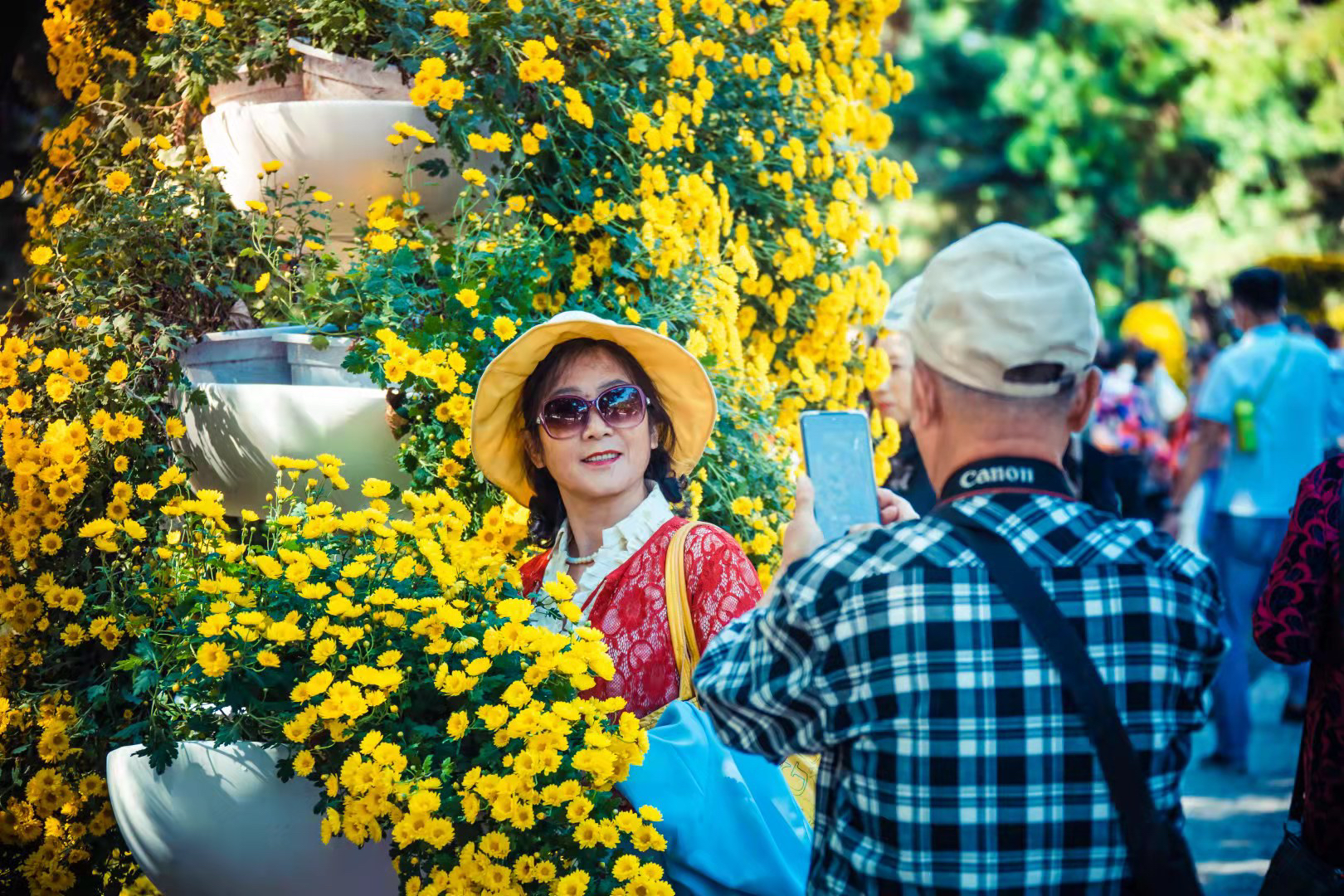 本次菊花展增加了多个景点,有菊花广场、标本菊切花菊展区、大丽菊展区、大菊花展区、瀑布悬崖菊景观、盆景大道等,增加了花量和品种,共展出大小菊花近600个品种,共12万余株。展出标本菊、大菊花、千头菊、盆景菊、悬崖菊花架、菊树,造型菊和大型立体花坛等,全部免费为市民开放。同时,中山广场还布置了大量盆景、卧龙、花篮等景观。(丁冬/摄)