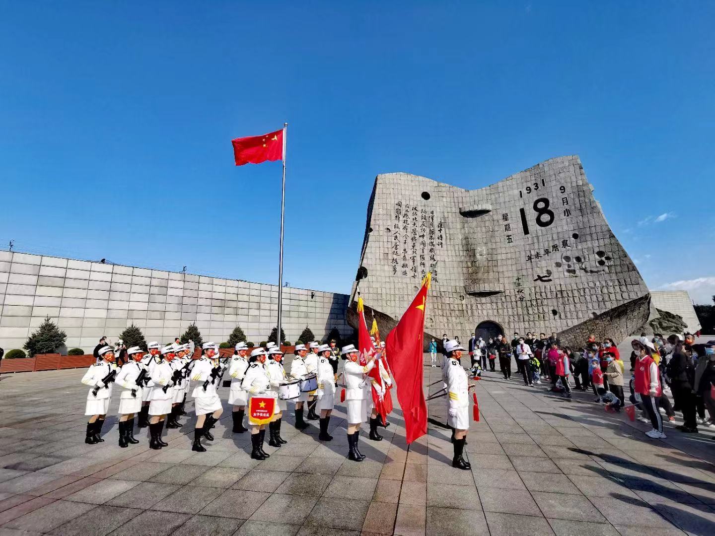 上午9点30分,英姿飒爽的沈阳女子仪仗队喊着响亮的口号、踏着整齐的步伐,在庄严肃穆的残历碑广场举行升国旗仪式。记者看到,游人不约而同地跟随节奏齐声高唱国歌,旗杆上的五星红旗与观众手中的一面面小国旗交相辉映,让整个残历碑广场顿时成为一片红色的海洋。