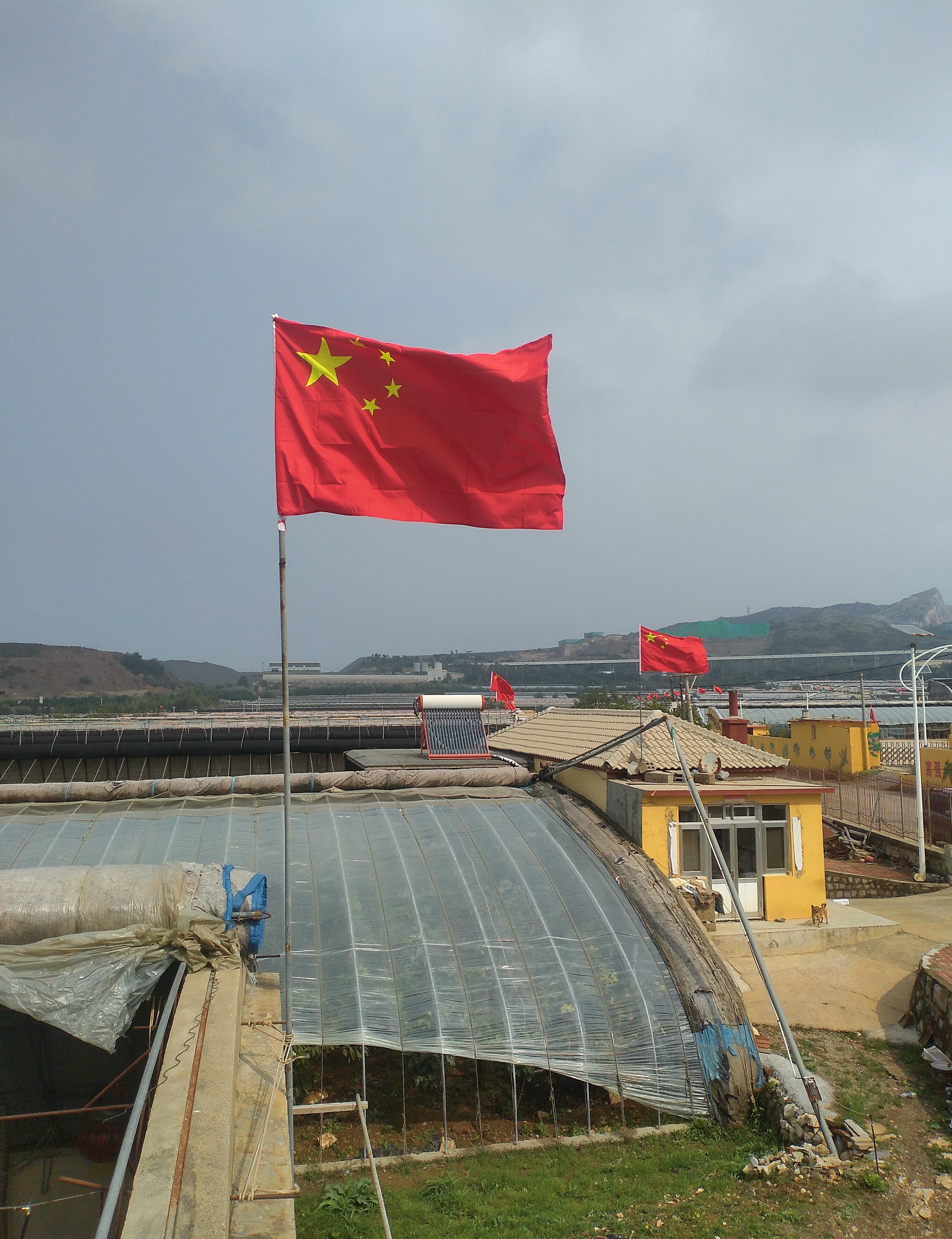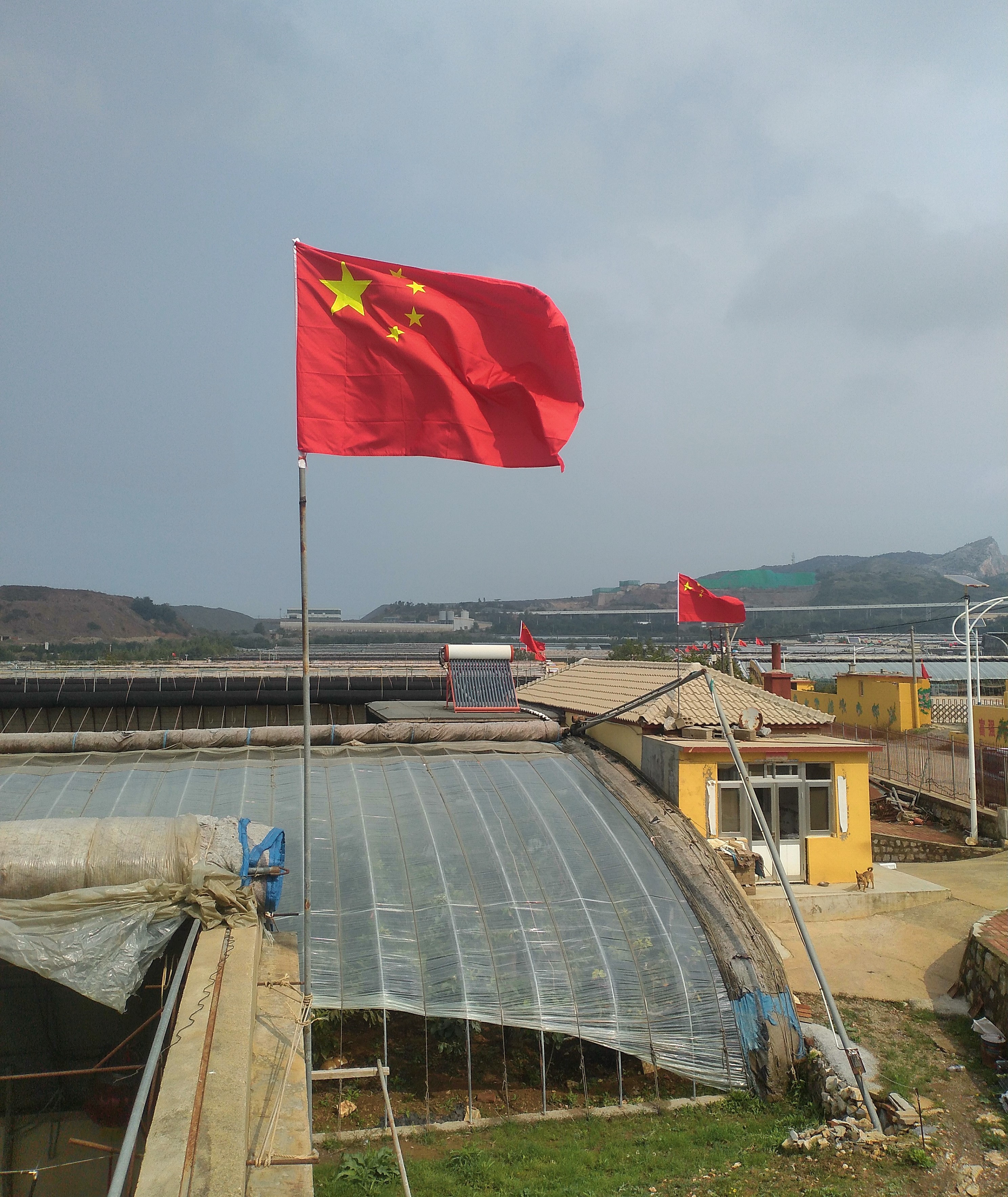 外地来连打工的刘光山经过多年打拼,也在许家窑村有了自己的设施大樱桃棚。他站在国旗下合影后,立刻把照片传给了老家亲属。“我让老家人看看,一是让他们放心,我在旅顺生活、收入都挺好,二是展示一下过上小康生活的村民们为祖国庆生的特有方式!” 刘光山开心地说。(刘焕恩)