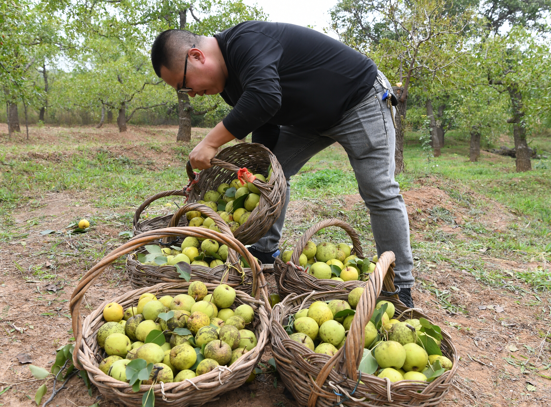 据辽宁日报北国客户端消息,国庆假日期间,朝阳市双塔区孙家湾镇花章营子村果园里的黄橙橙酸梨挂满枝头,吸引游人目光。人们高兴地采摘酸梨,挖新鲜山野菜,体验劳动生活,感受国庆假日乡村采摘游带来的乐趣。(仇一军 孙福义)
