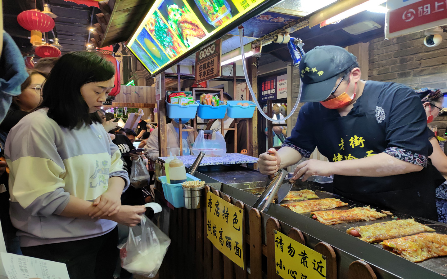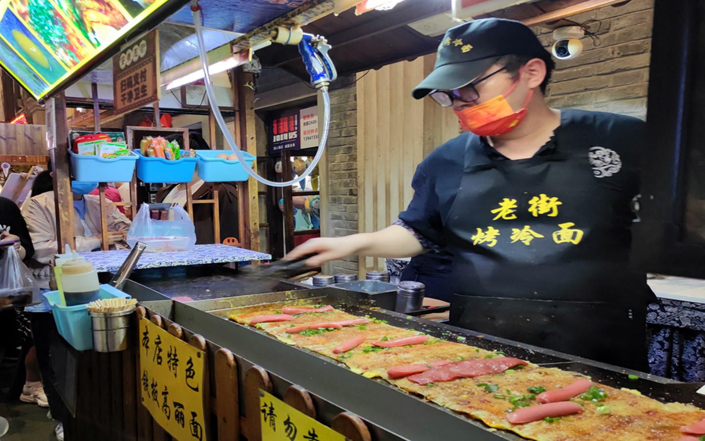 在安东老街内的另一家烤冷面摊前,同样挤满了食客,摊主曹永广告诉记者:“大部分是回头客,这几天每天都有300多单!”