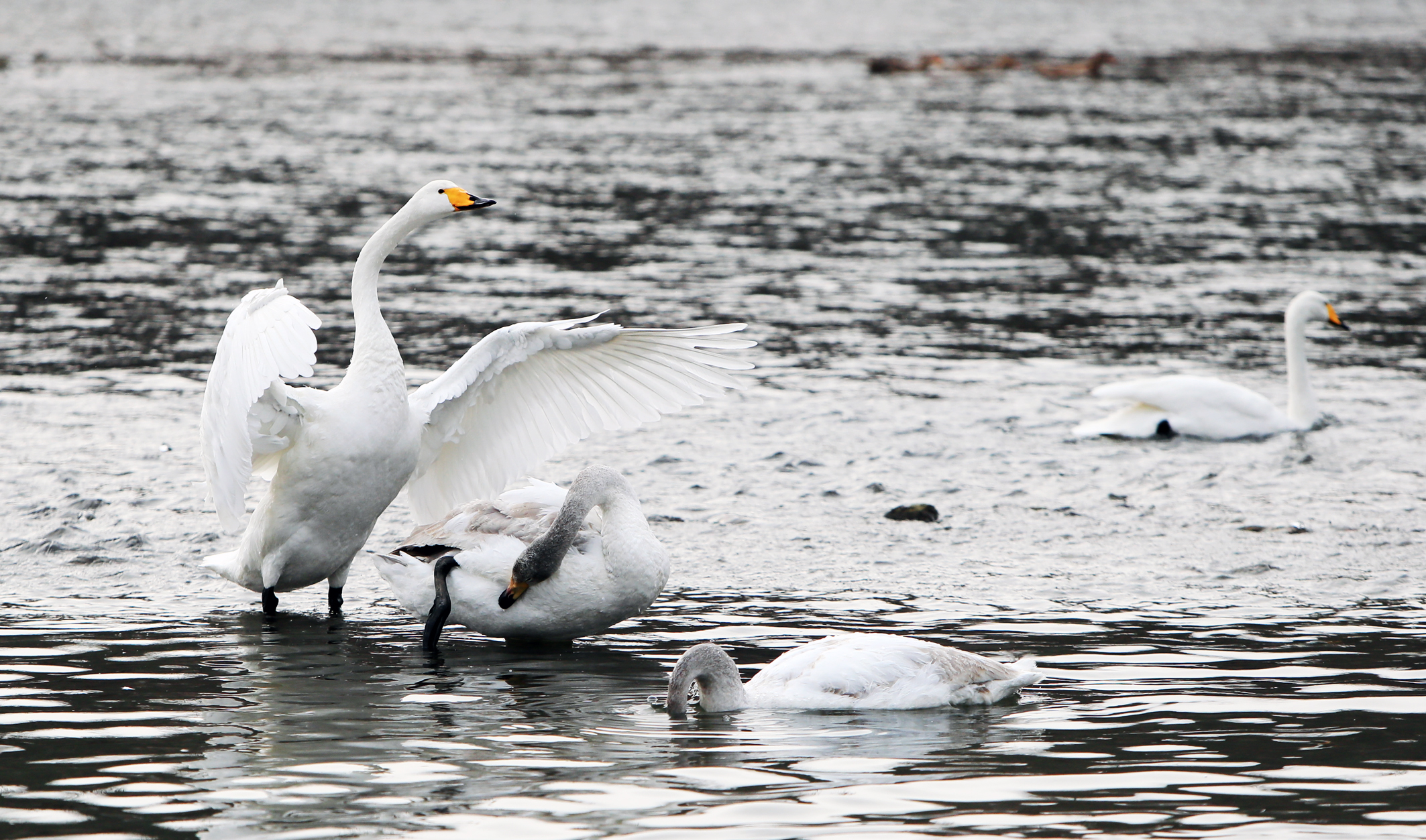 一名巡逻的野生保护动物协会志愿者说,随着人们爱鸟意识的增强,加之志愿者的精心呵护,来天鹅湾过冬的天鹅数量逐年增多。它们的莅临不仅给自然景观带来了灵气,也给当地旅游增添了亮点,成为美丽乡村宣传的名片,每年吸引全国各地的游客和摄影爱好者目光。(辽宁日报特约记者 仇一军/摄)