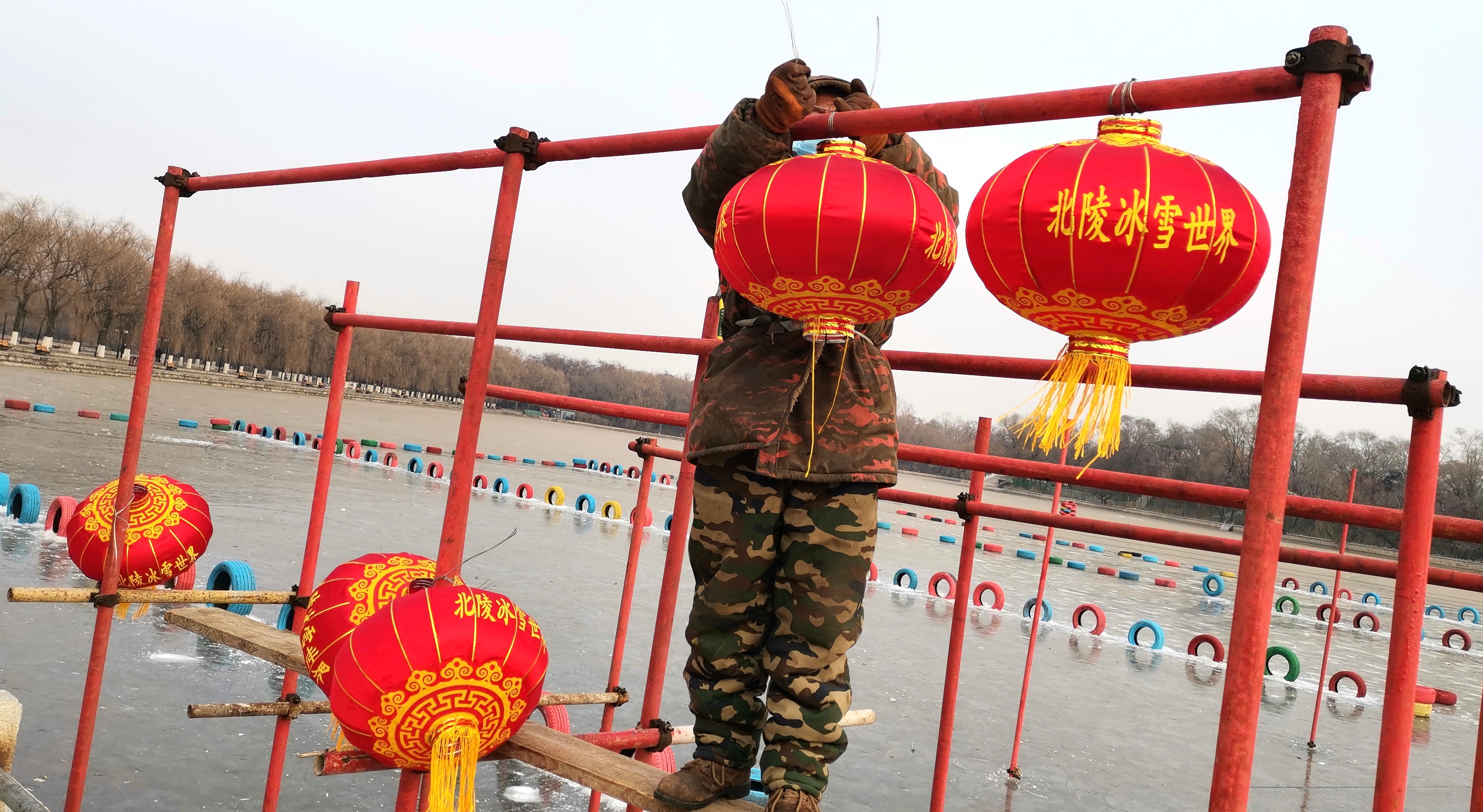据工作人员介绍,北陵冰雪世界占地4000平方米,里面有滑雪圈、冰车、卡丁车、冰上坦克等很多冰上项目,目前正在紧张准备之中,定于元旦开始营业。快来“打卡”吧!(记者 : 孙海涛)