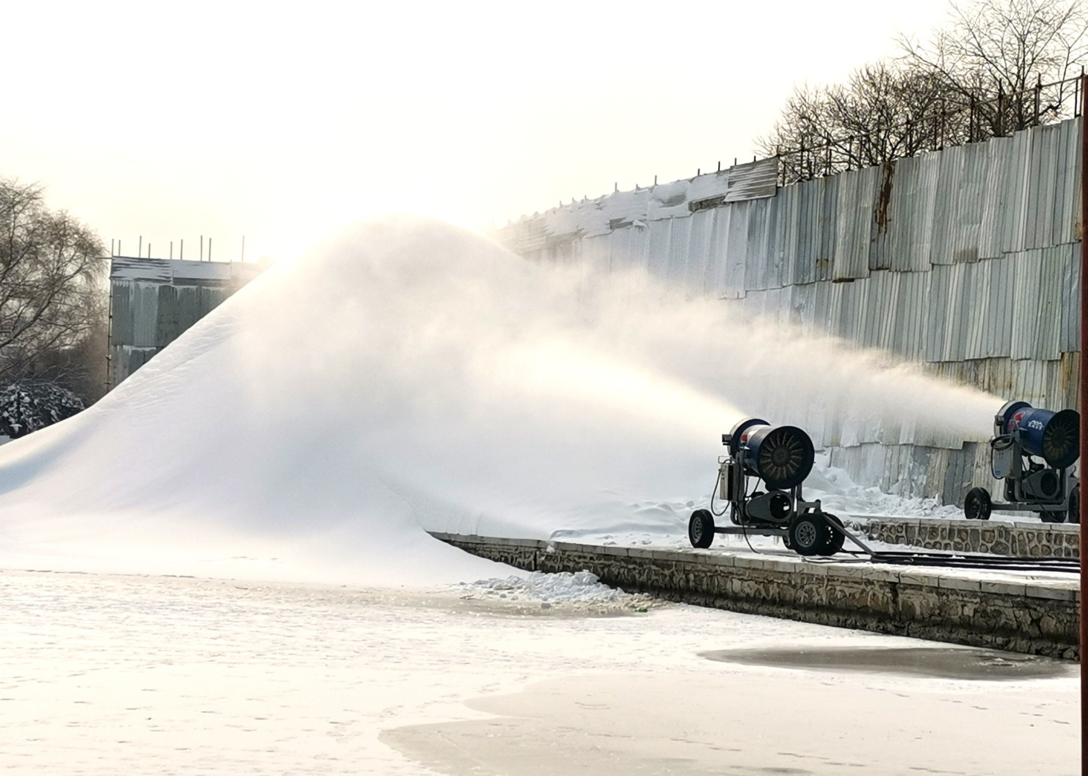 据辽宁日报北国客户端消息,日前,记者在北陵公园内皇太极广场东侧看到,两台巨大的造雪机正在不停地喷射着细小的冰晶,一座人工雪山已初具规模。