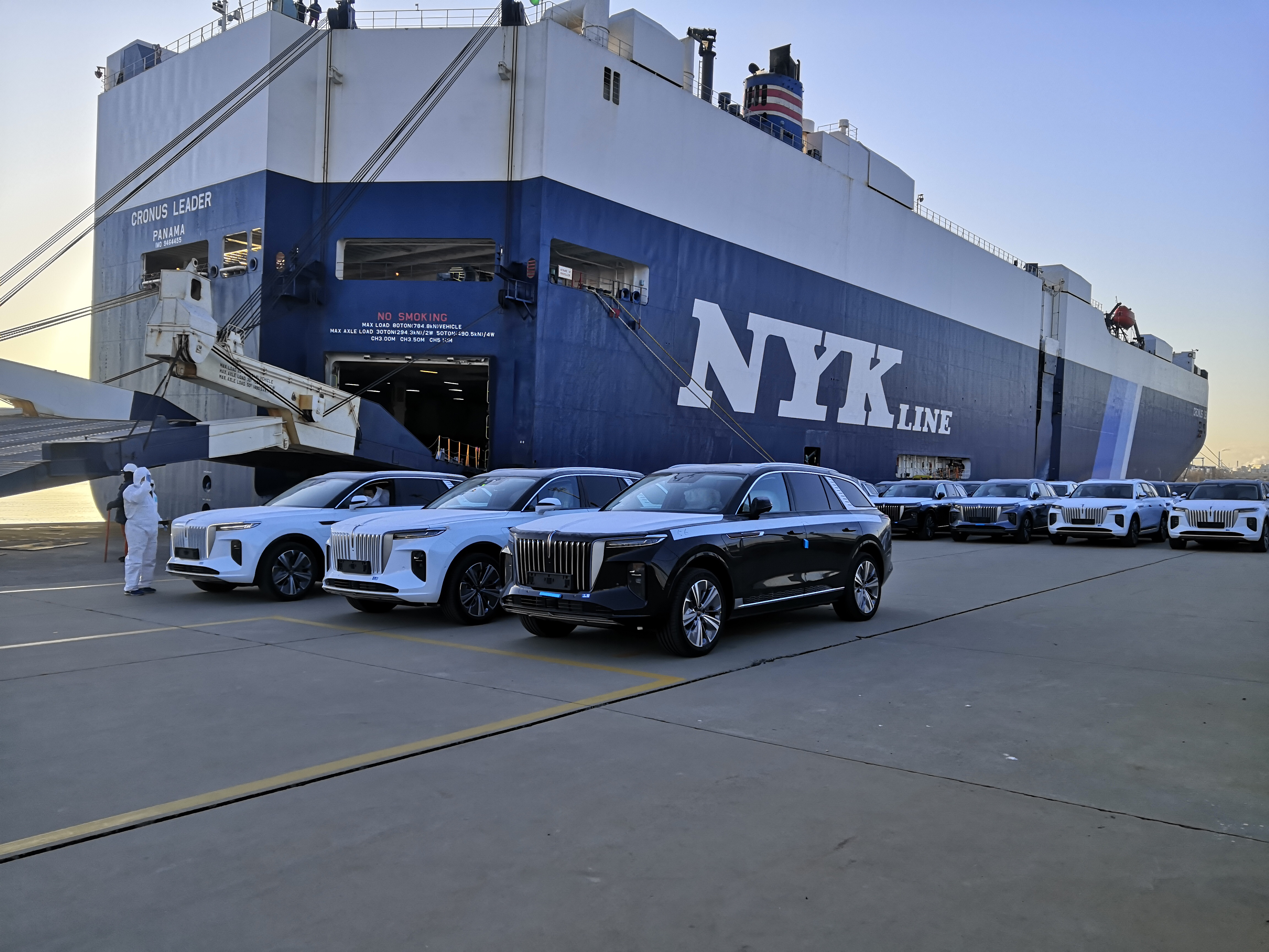 据辽宁日报北国客户端消息,12月26日上午,辽港集团一汽红旗商品车外贸出口航线正式开通运营,首批红旗E-HS9纯电动汽车在大连汽车码头陆续驶入“克罗诺斯领袖”轮,以海运方式发往挪威。