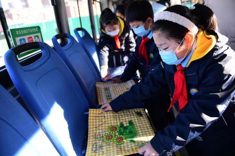 沈阳市浑南区暖心少年手工缝制“温暖牌”坐垫温暖公交乘客