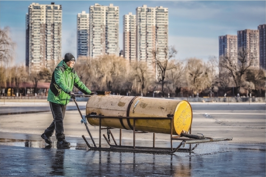 沈阳冰场“美容师”连续8年 义务给劳动公园户外冰场浇水