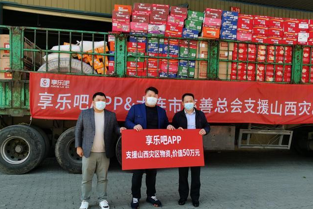 大连首家援晋爱心企业——圣同润集团投资控股平台“享乐吧”APP联合大连市慈善总会,火速行动,筹集物资,支援山西受灾地区。