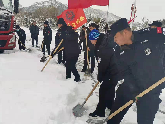 兴城市公安局第一时间启动冰雪天气应急预案,采取超常规措施,全警动员,全员参战,疏导指挥交通,救助受困车辆,服务辖区群众,筑牢交通安全“生命线”。