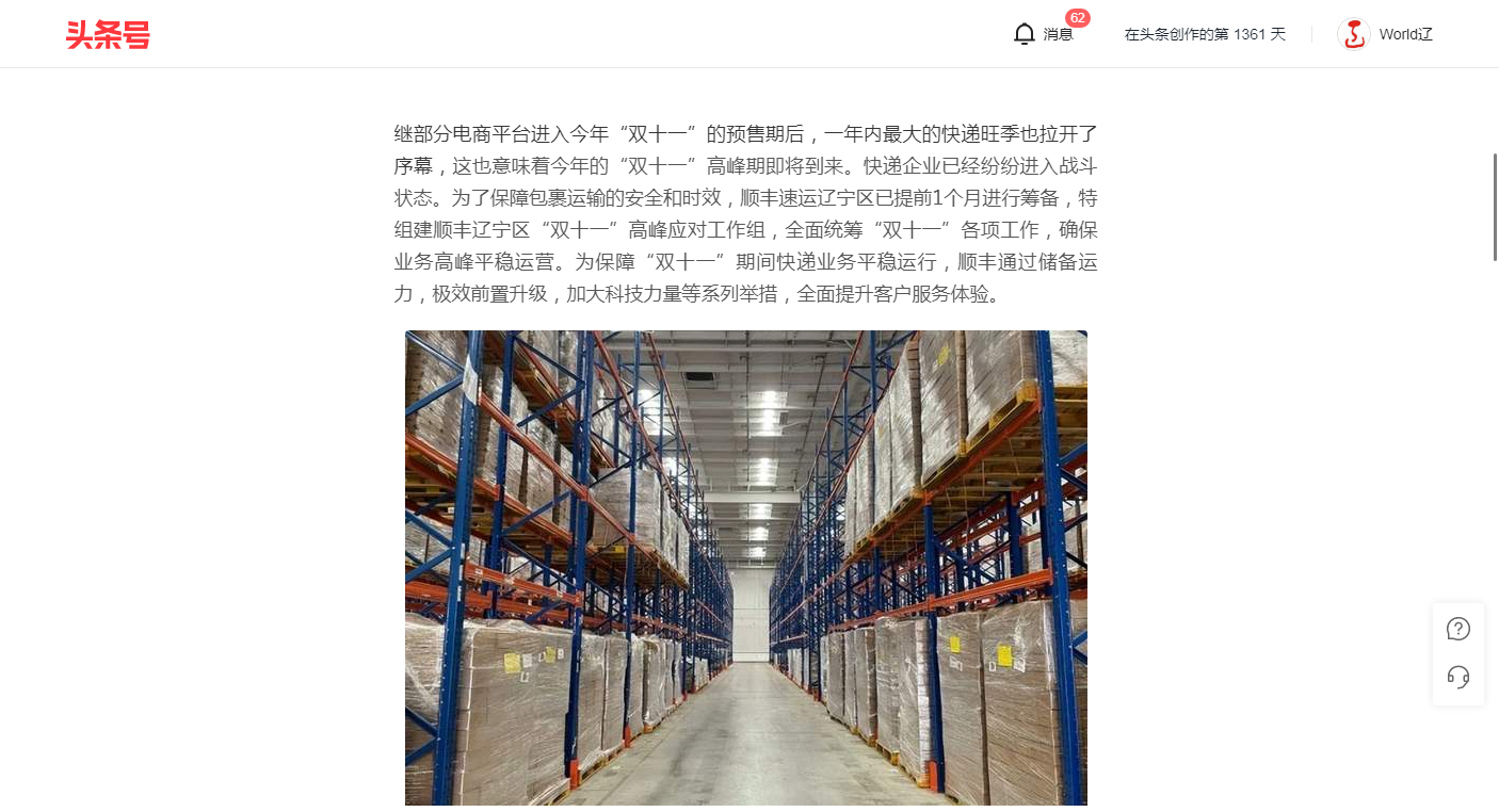 有温度、有速度 顺丰为客户打造“双十一”优质服务体验