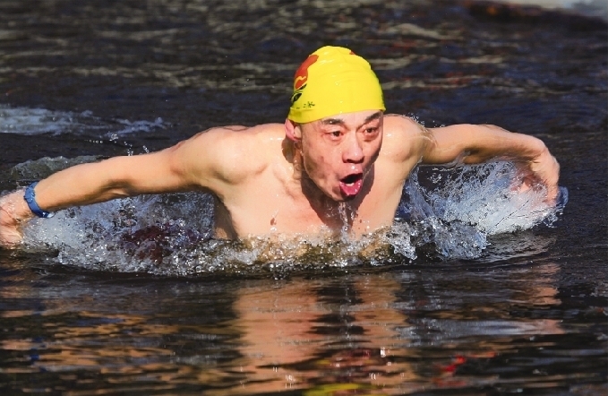沈阳冬泳人北陵公园以新春首赛迎接冬奥会为冬奥健儿加油