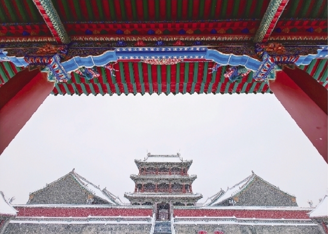 11月8日,沈阳故宫在银装素裹之下,红墙黛瓦,飞檐翘角全都是新的模样。